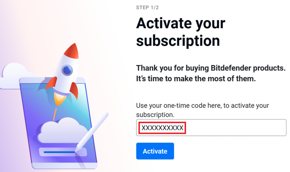 Step 3: Open Bitdefender Central to enter the activation code provided.