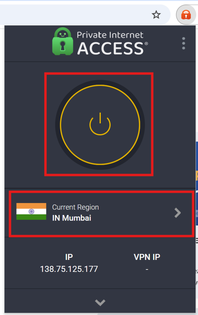 Set up your initial settings and search for “IN – Mumbai” region. Click on the power button to connect.